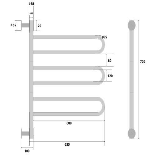 Energy U chrome G3 - электрический полотенцесушитель с тремя U-образными поворотными греющими секциями низкого энергопотребления - 15 Вт на секцию. Предназначен для эффективной просушки изделий из ткани — полотенец, банных халатов и других, а также для дополнительного обогрева ванных комнат, душевых, санузлов и просушки вещей из ткани. Произведён из высококачественной пищевой нержавеющей стали.