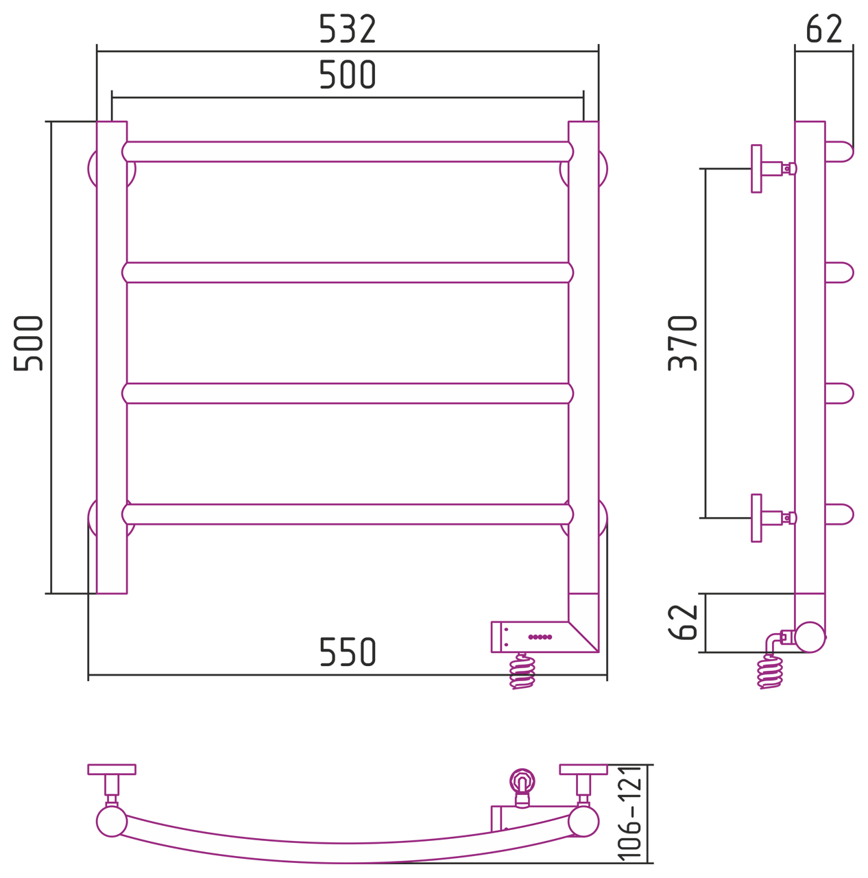 Полотенцесушитель электрический Сунержа Галант 2.0 500х500 с блоком управления справа, 00-5201-5050