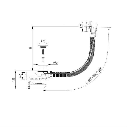 Сифон для ванны металл/пласт 600 мм
