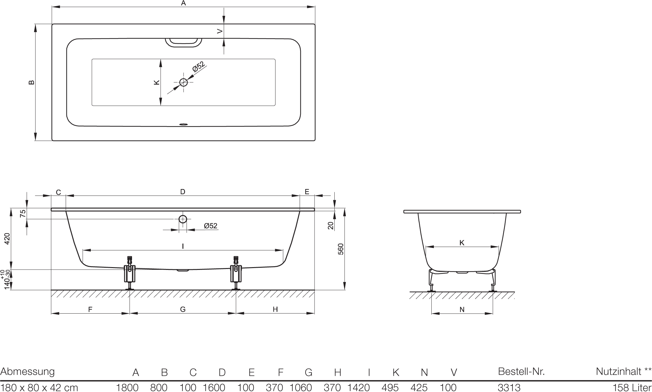 Стальная ванна Bette One 180x80 3313-000+PLUS